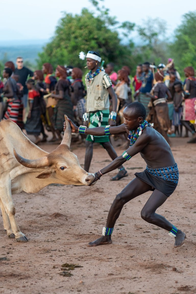 Every boy in the Hamer tribe must undergo the bull jumping ceremony in order to transition into manhood and marry.