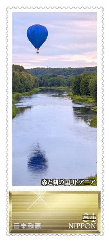 The photo for the stamp was taken from a hot air balloon above Neris river near Vilnius.